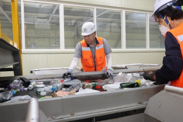 하루 10톤의 처리 규모를 자랑하는 이 시설은 최신 광학 자동선별 기계를 비롯해 사람이 직접 선별하는 과정까지 도입해 처리 효율성을 높였다.